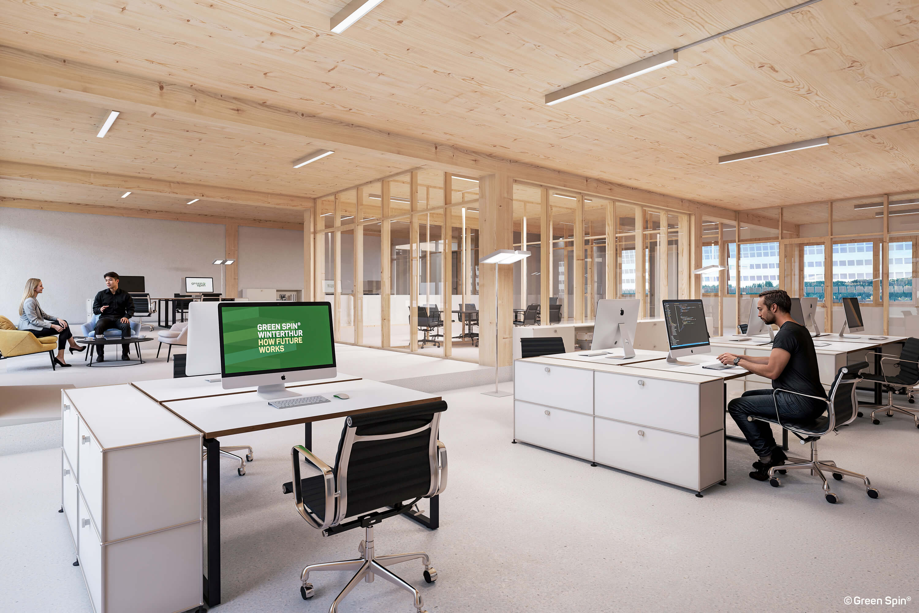 For the pioneering Green Spin project in Winterthur – a multifunctional new building with a focus on sustainability – Encira was commissioned to provide specialist planning services in the areas of noise protection, building acoustics, room acoustics, and thermal building physics consulting, starting from SIA Phase 33.